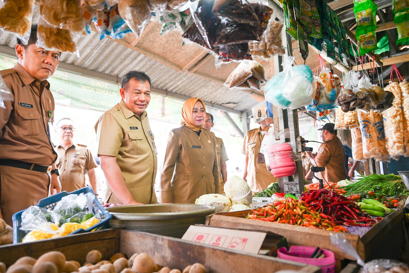 Penjabat Bupati Purwakarta Benni Irwan melakukan Monitoring Harga Bahan Pokok di Pasar Citeko Plered Purwakarta.