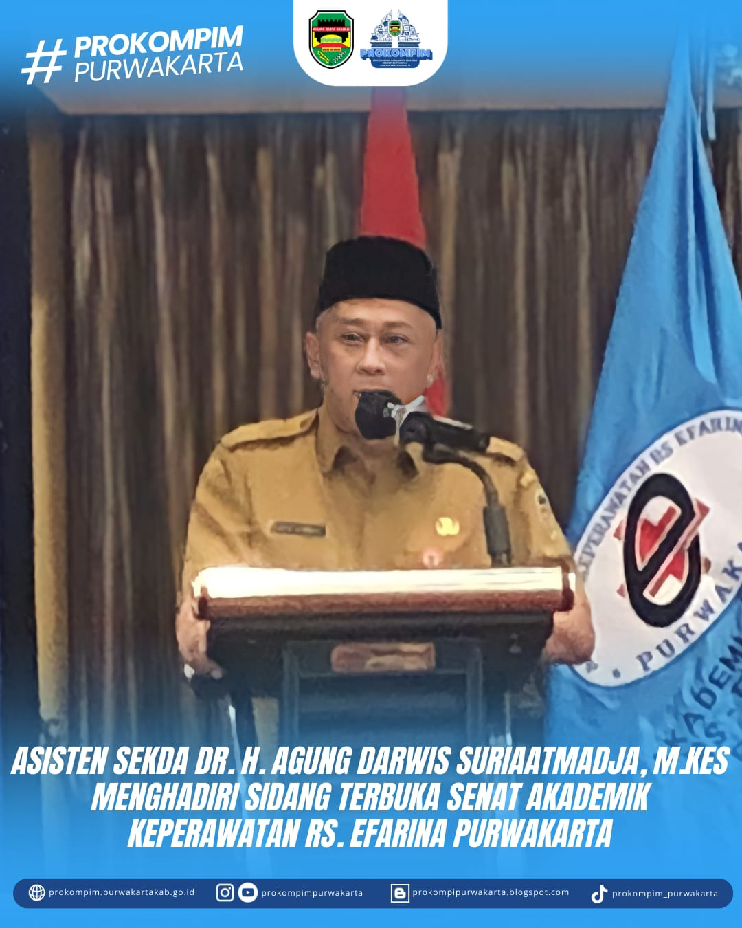 Asisten Daerah Bidang Perekonomian dan Pembangunan dr. H. Agung Darwis Suriaatmadja, M.Kes mewakili Pj. Bupati menghadiri Wisuda Program Studi Diploma III Keperawatan Akademi Keperawatan RS. Efarina Purwakarta Tahun Akademik 2022/2023, bertempat di Prime Plaza Hotel.